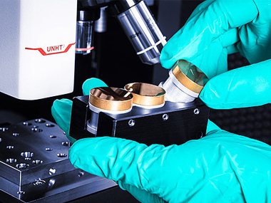 UNHT³ 高精度超納米壓痕測試儀采用真實力傳感器和位移傳感器,可用于測量材料在納米尺度下的機械性能。UNHT³ 采用獨特的主動表面參比專利技術,消除了熱漂移和框架剛度的影響。因此,非常適用于對所有類型的材料(包括聚合物、納米涂層和軟組織)進行原子到納米尺度的長時間測量。對于極低或極溫度下的測量,真空室版本 (UNHT³ HTV) 適用于 -150℃ 至 800℃ 的溫度以及低至 10-7 mbar 的真空度。