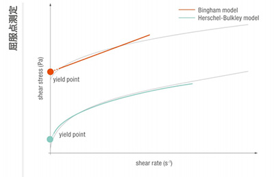 屈服點在質(zhì)量控制中至關(guān)重要.其用干確定開始擠壓和泵送過程所需的力。屈服點是樣品開始流動的起始點。屈服點可通過不同回歸模型進行分析。在質(zhì)量控制方面.屈服點通過設定一個剪切速率斜坡并觀察與剪切應力相關(guān)的數(shù)值進行確定:結(jié)果為流動曲線