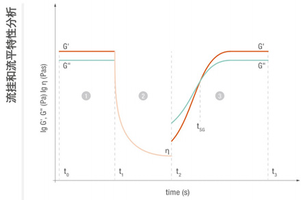 黏合劑的流掛和流平特性可通過 3 段觸變測試(3iTT) 進行確定.該測試可在旋轉(zhuǎn)、振蕩或兩者結(jié)合的情況下進行.具體取決于儀器類型和您的需求。測試結(jié)果可預測黏合劑在應用(2)后與初始樣品特性(1)相比如何恢復其內(nèi)部結(jié)構(gòu)(3),以確保理想的流平和濕膜厚度,從而防止流掛。