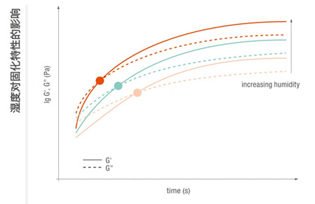 環(huán)境濕度會顯著影響窗口期、凝膠化時間和固化過程。在此處,增加濕度會加速固化過程,濕度越高,達到凝膠點的時間式越早。