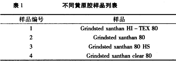試驗(yàn)樣品均來自丹尼斯克公司格林斯德系列黃原膠,見表 1。