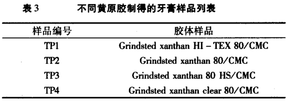不同黃原膠制得的牙膏樣品編號見表 3。