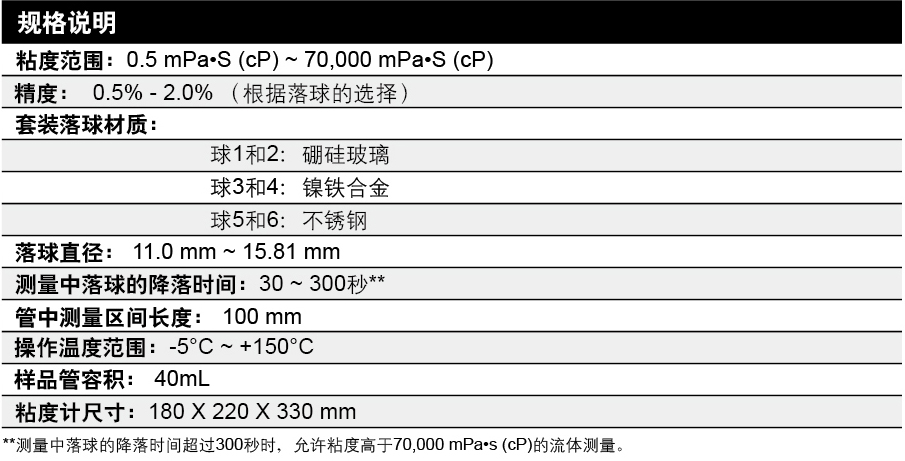落球式粘度計用于各種不同工業(yè)的QC控制和科研機構(gòu)研發(fā)。使用簡便的時間測量方法確保了有意義的測試結(jié)果。
