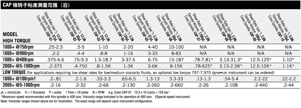 CAP1000+&CAP2000+椎板粘度計適用于中、高剪切測試