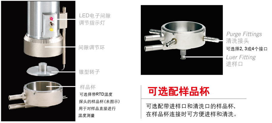 儀器組成:①儀器主機 ②支架 ③用戶選定的一支錐型轉子 ④樣品杯