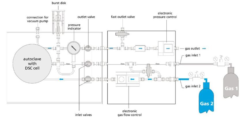 DSC 204 HP Phoenix® 既可只配備電子壓力調(diào)節(jié)器用于靜態(tài)壓力氣氛下的測試,也可額外配備電子流量控制器用于動(dòng)態(tài)壓力氣氛下的工作。儀器擁有獨(dú)立于電腦的數(shù)字壓力顯示和氣體流量控制,減壓裝置可配備不同的適配器,適應(yīng)于各類不同的氣體。