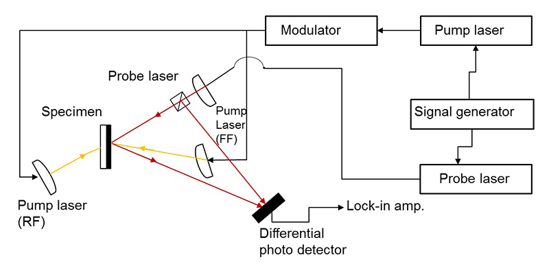 除了 RF 方法之外,測量也可以使用前部加熱/前部探測(FF)的結(jié)構(gòu)進行。“Front”一詞這里指的是沉積于基體上的薄膜的外表面,而“Rear”一詞指的是薄膜與基體接觸的一面。