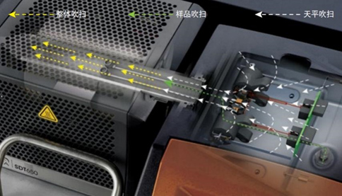 水平吹掃氣流流經(jīng)樣品上方,獲得最優(yōu)靈敏度