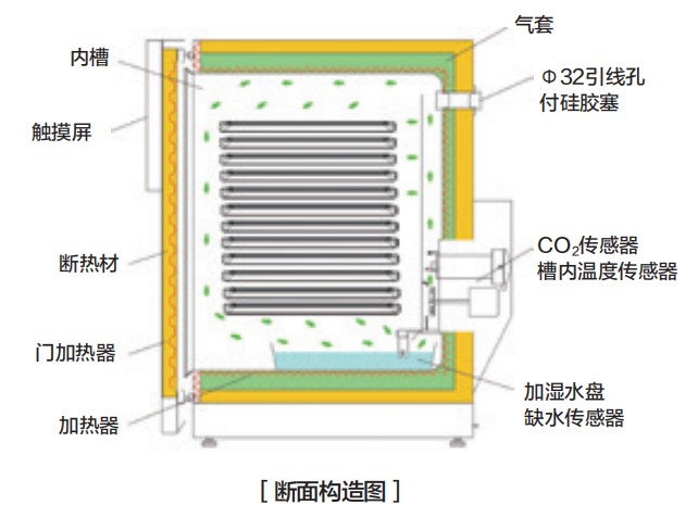 過電流漏電保護(hù)開關(guān)、獨(dú)立過升防止器、溫度上下限異常、CO2濃度上下限異常、自診斷功能、門打開報(bào)警、加濕水缺水報(bào)警(熱敏電阻)、按鍵鎖 |