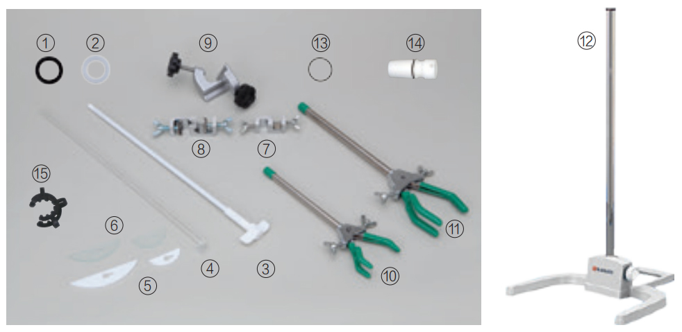 使用說明書、保證書、軸、M5角螺栓、六角扳手、AC適配器、電源線、 保護(hù)罩 燒瓶夾 |